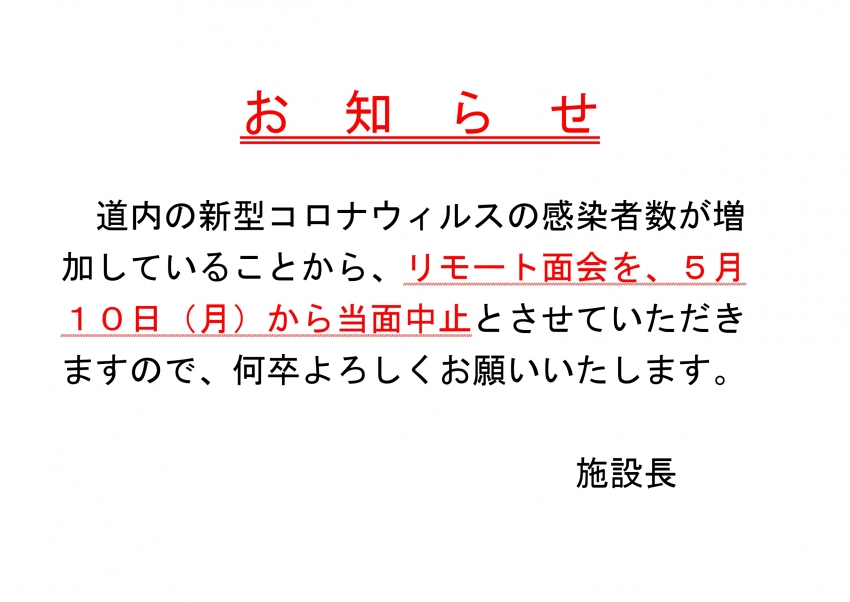 砂川福祉会 ホーム>地域密着型特別養護老人ホーム福寿園(サテライト型)からのお知らせ>新型コロナウィルス感染防止対策に伴う面会中止について 地域密着型特別養護老人ホーム福寿園(サテライト型)からのお知らせ 新型コロナウィルス感染防止対策に伴う面会中止について 2021.05.10 「地域密着型特別養護老人ホーム福寿園(サテライト型)からのお知らせ」一覧へ戻る