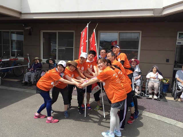 当日は快晴で暑かったですが、ケアハウス、老健入所者の皆様のご声援のおかげで、無事完走し、次のブロックにタスキを引き継ぐことが出来ました!
