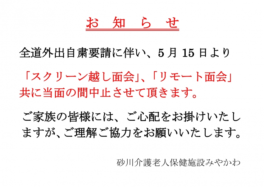 新型コロナ対策に伴う面会中止について
